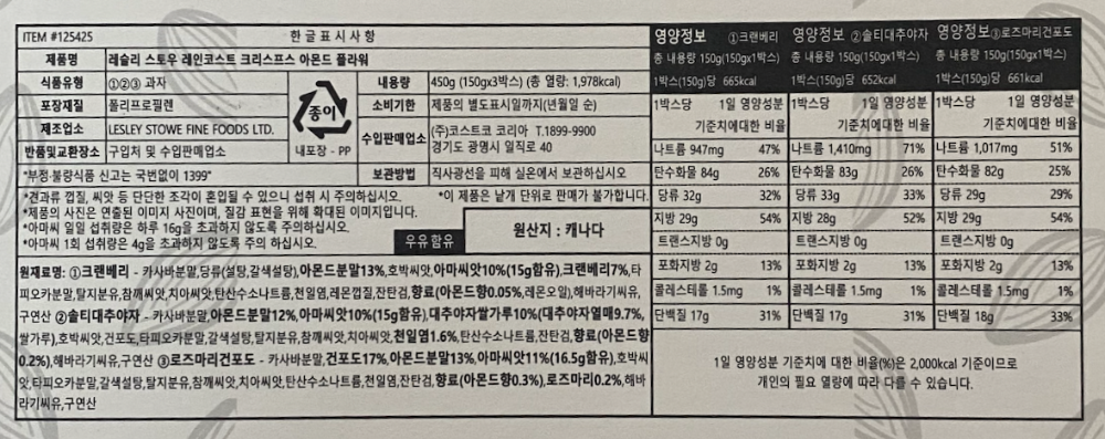 - 특징: Non-GMO, Low Fat, Kosher 인증